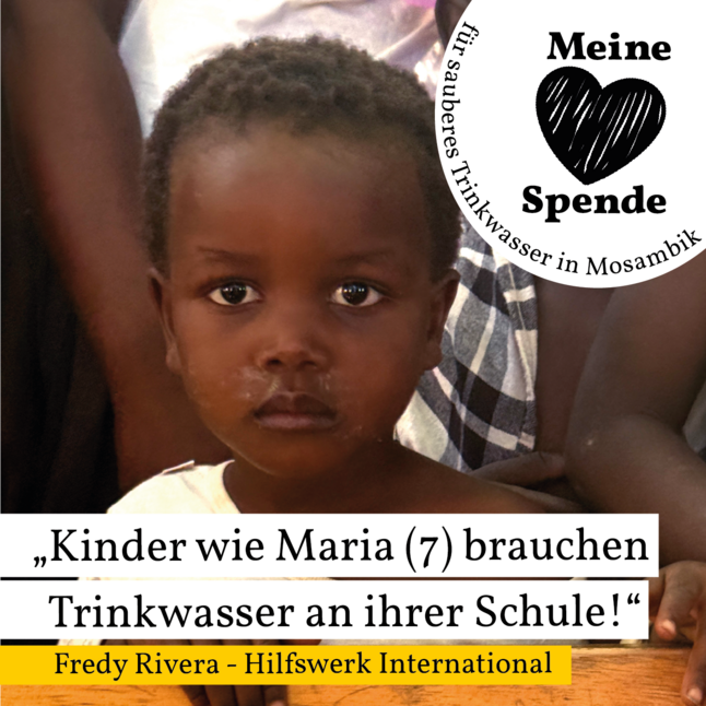 Wir von Hilfswerk International wollen Kindern wie Ana helfen: mit dem Bau eines Brunnens an der Aviário Volksschule, könnte Ana in die Schule gehen und am Nachmittag Wasser nach Hause bringen. Denn nur wenn sie lesen, schreiben und rechnen kann, hat sie eine Chance auf ein gutes Leben.