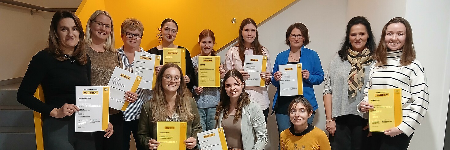 28 Teilnehmerinnen haben den pädagogischen Ausbildungslehrgang zum*r Kinderbetreuer*in in NÖ Kindergarten und Hort erfolgreich abgeschlossen. In der Hilfswerk Akademie werden hochwertige Aus-, Fort- und Weiterbildungen im pädagogischen Bereich angeboten. Jahrzehntelange Erfahrung und tiefgreifendes Wissen werden in Form von zertifizierten Kursen und Lehrgängen weitergegeben. Qualität und Praxisnähe werden dabei großgeschrieben.
