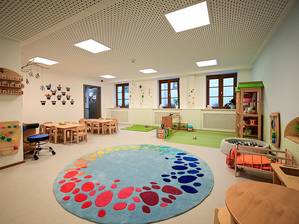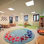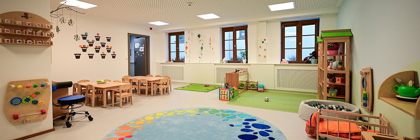 - In der Wichtelstube können 15 Kinder im Alter von 1 – 3 Jahren betreut werden.