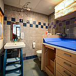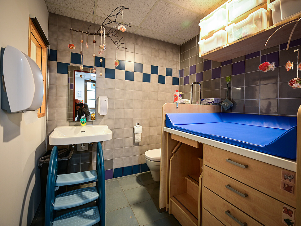 - 1 Waschraum mit Wickeltisch, Waschbecken und Toilette