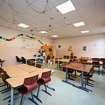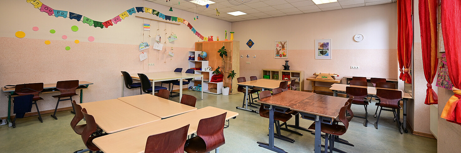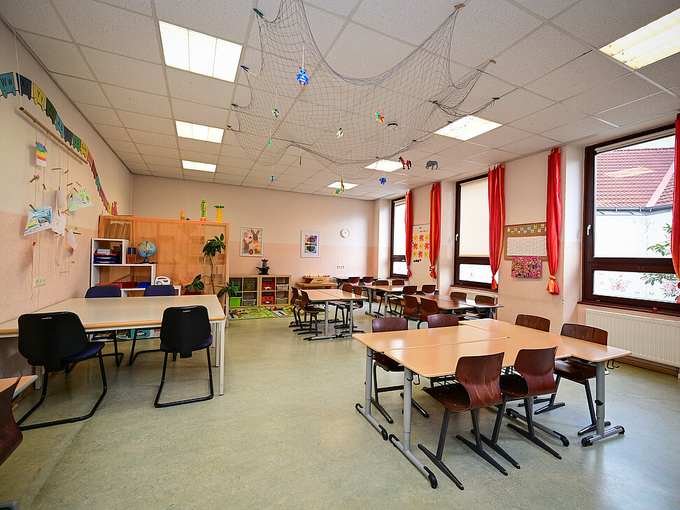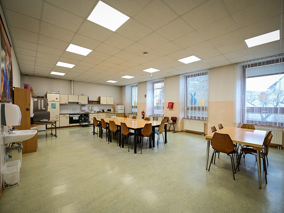 Den Kindern steht der Gruppenraum, die Schulküche und der Turnsaal zur Verfügung.