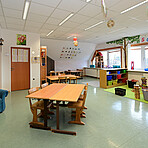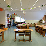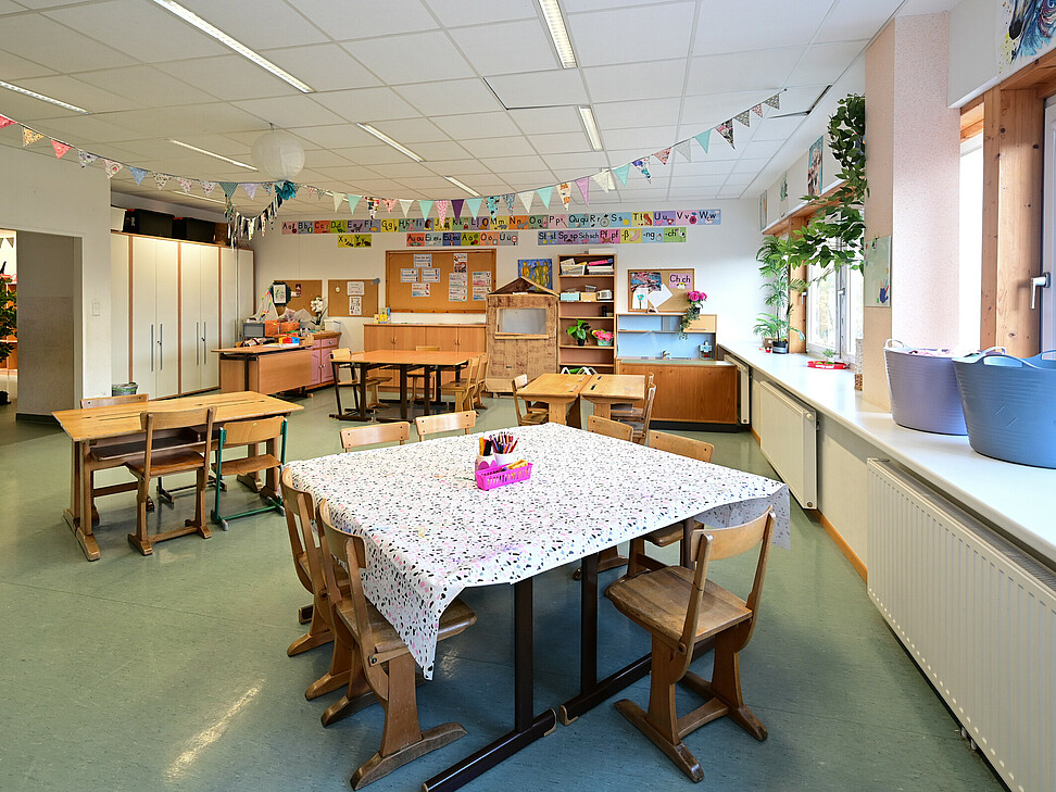 Der Hort ist im 3. Stock der Volksschule Bad Fischau-Brunn, in dem wir eine Küche mit großem Essbereich, Sanitäranlagen und zwei große helle Spielgruppen zur Verfügung haben. Weiters dürfen wir eine weitere Gruppe als unser Lernstübchen, in dem die Kinder die Möglichkeit haben ihre Hausaufgaben zu erledigen, verwenden. Da die Kooperation mit Schule und Gemeinde für die Kinder so fantastisch läuft, dürfen wir mit den Kindern den Turnsaal und auch den Schulgarten mitverwenden.