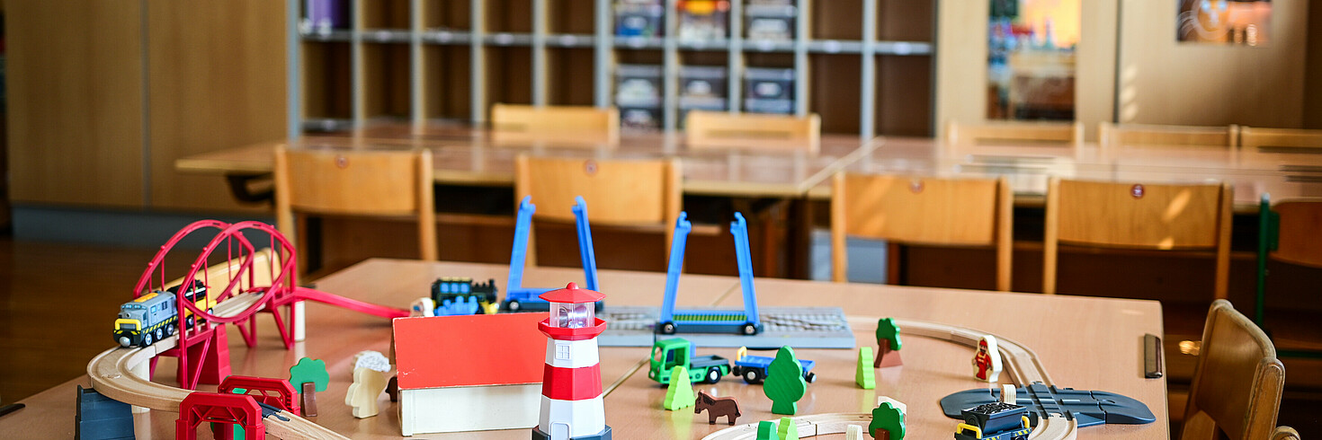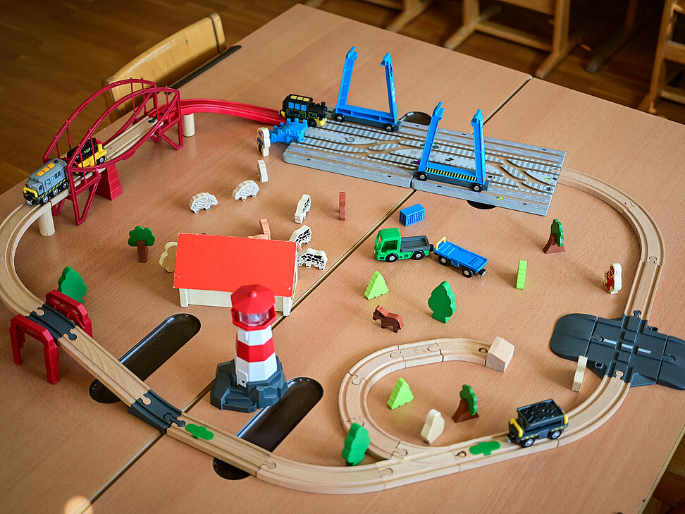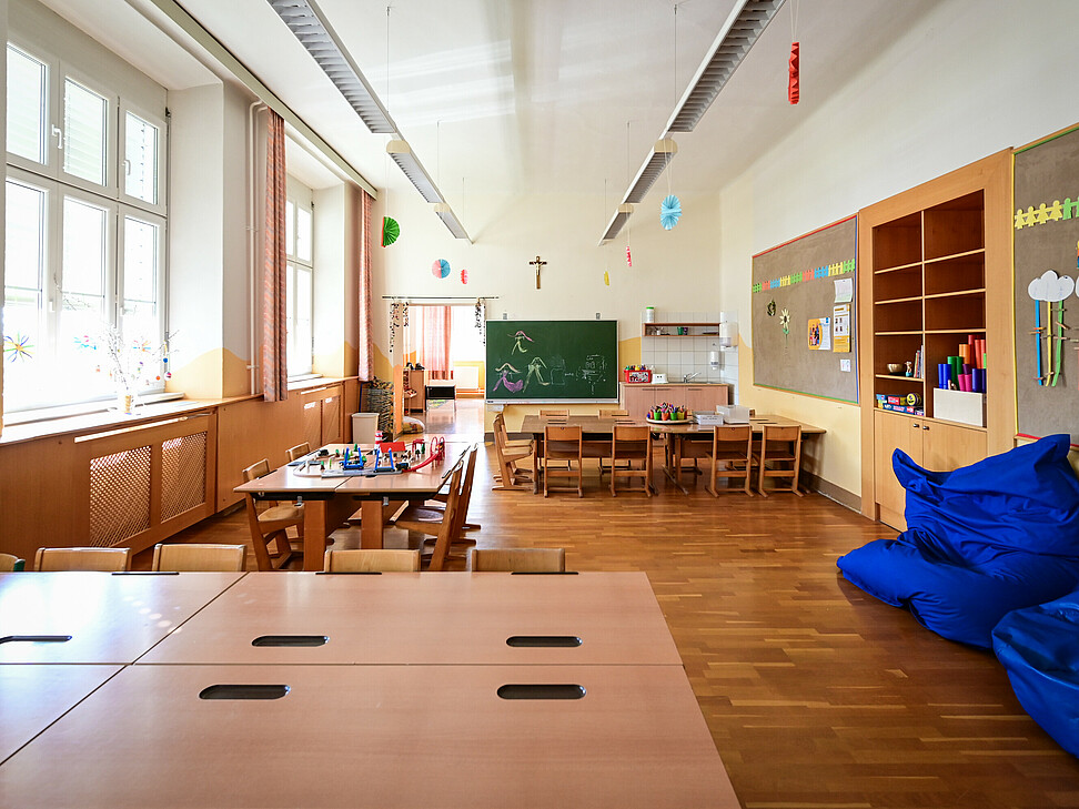 1 Gruppenraum, 1 Spielecke, 1 Bewegungsraum und der Schulgarten.