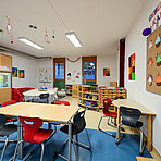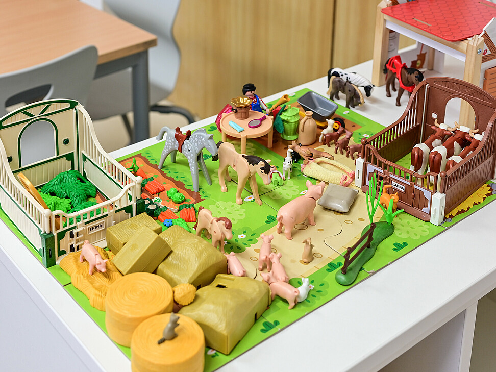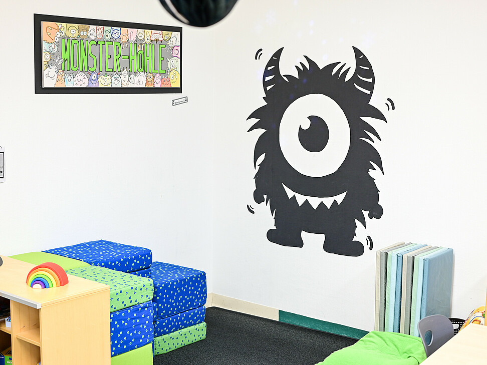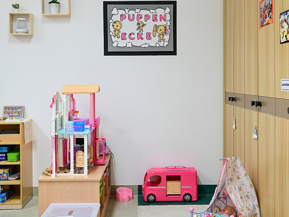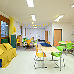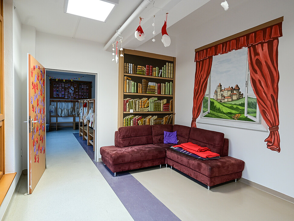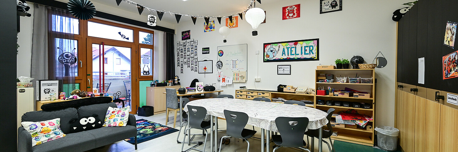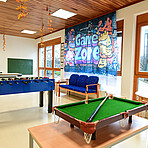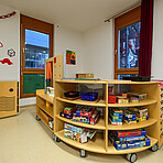 Neben den eigenen Gruppenräumen stehen uns weitere Räumlichkeiten zur Verfügung, darunter eine Spielehalle sowie ein Aktivitätenraum.