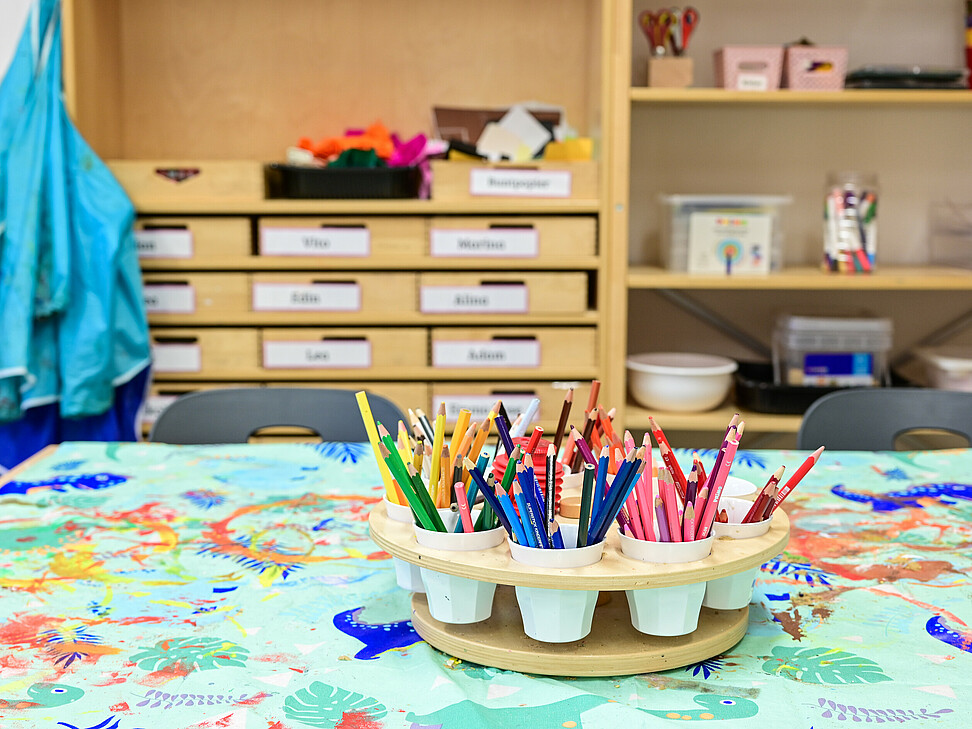 Des Weiteren verfügen wir über einen eigenen, separaten Speisesaal, in dem die Kinder ihre Mahlzeiten gemeinsam einnehmen können.