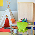 Bewegungsraum, Gruppenraum, Hof und Garten