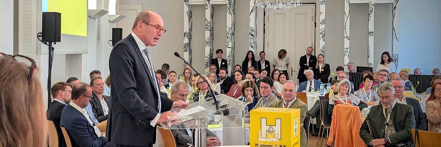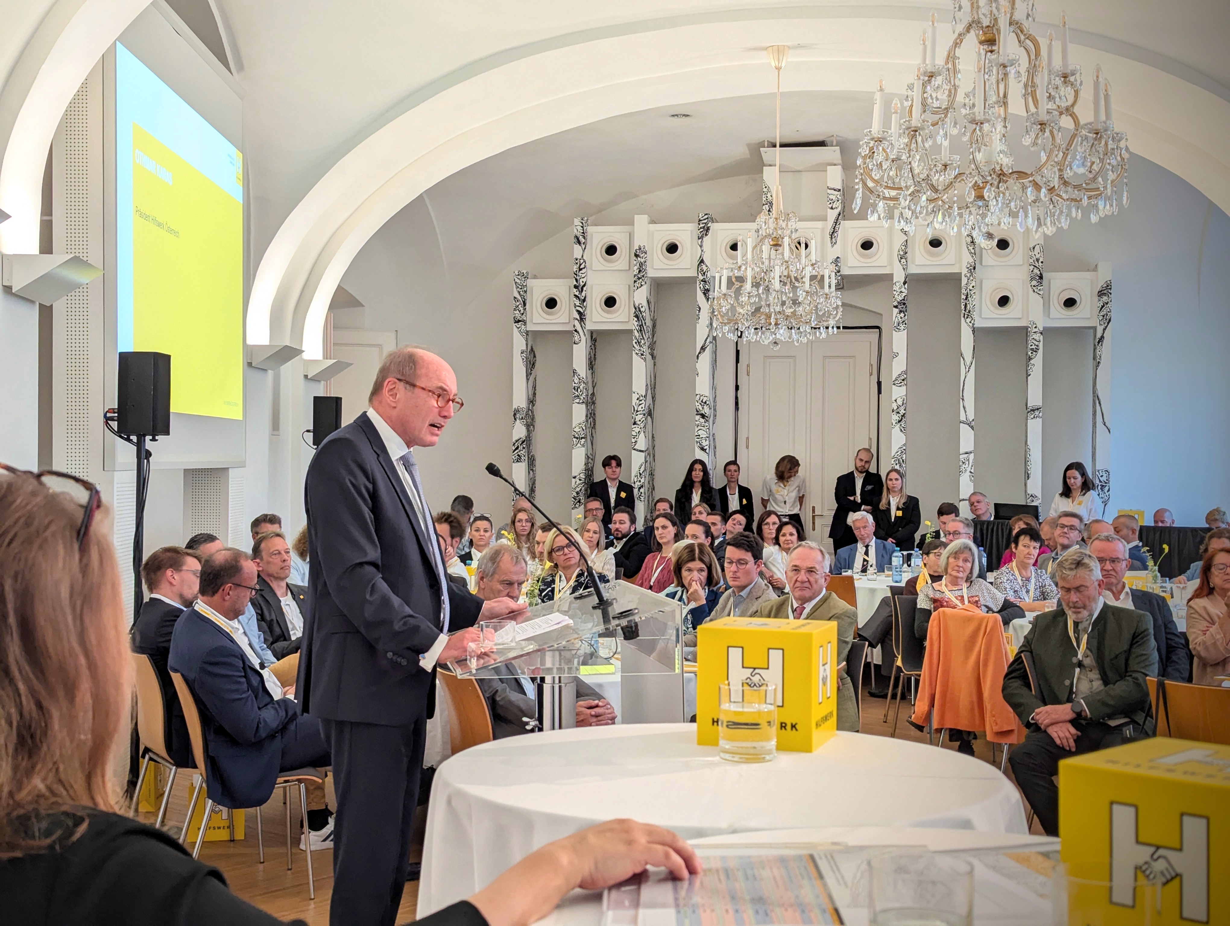 Neben Grußbotschaften von Bundespräsident Alexander Van der Bellen, Bundeskanzler Christian Stocker und Bundesministerin Korinna Schumann gab es auch Dankesworte vor Ort von Nico Marchetti, dem Generalsekretär der Österreichischen Volkspartei.