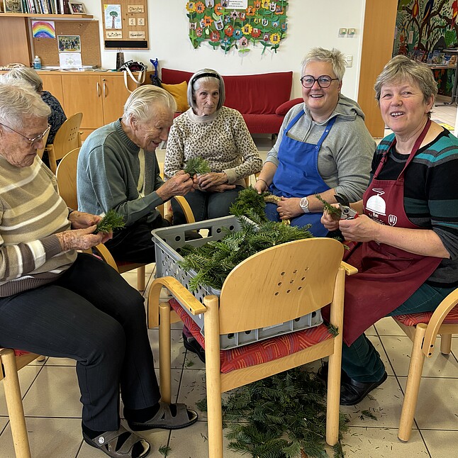 Im Tageszentrum "Lebensgarten" des Hilfswerks in Oberneukirchen durfte natürlich das gemeinsame Adventkranzbinden nicht fehlen.