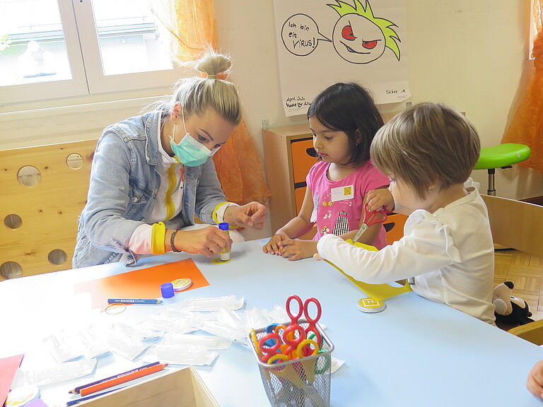 Das Projekt wurde von Mitarbeiter/innen der Elementarpädagogik in enger Zusammenarbeit mit Fachexpert/innen des Hilfswerks aus dem Bereich Pflege entwickelt. Gemeinsam vermitteln die Kolleg/innen kindgerecht, was ein Virus eigentlich ist, was er verursachen kann und wie man sich davor schützt. Da werden zum Beispiel Plakate gemalt, Schutzausrüstungen anprobiert und kleine Corona-Viren aus Schokotalern gebastelt. Auch Eltern werden mit entsprechenden Infomaterial sowie Tipps und Tricks für den Alltag versorgt. „Im Sinne der Erziehungspartnerschaft zwischen Einrichtung und Eltern ist es uns wichtig, hier im engen Austausch zu sein. Ob zuhause oder in unseren Betreuungseinrichtungen: Die Unsicherheiten Covid19 betreffend sind schließlich da und dort dieselben. Nur gemeinsam können wir die Kleinen bestmöglich begleiten.“