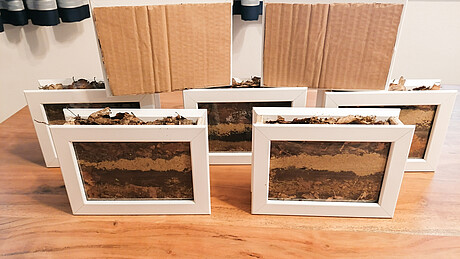 Ein weiteres Highlight sind die Regenwurmhotels, die jedes Jahr gemeinsam mit den Kindern gebaut werden. Die genaue Anleitung dazu finden Eltern und Interessierte auf unserer Bastelseite. Die Hotels sind genau so gestaltet, dass die Regenwürmer darin ein gemütliches Zuhause finden und die Kinder die Möglichkeit haben, die spannenden Würmer zu beobachten. Dazu gibt es eine abnehmbare Klappe, die einen Rundumblick über die Regenwurm-Aktivitäten bietet. Tagesmutter Birgit hat auch an die Familien gedacht und ihnen eine Anleitung für zu Hause gegeben. So können die Kinder die weitere Entwicklung der Regenwürmer verfolgen, sie füttern und die Vermischung der unterschiedlichen Erdschichten hautnah miterleben. Lernen mit allen Sinnen steht dabei im Vordergrund.